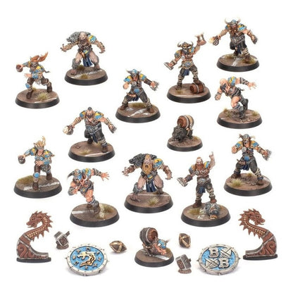 No hay nada que guste más a los equipos Norse que una buena pelea, ¡y así es como mejor se desenvuelven en el terreno de juego! Los Norse han pasado toda su vida en el duro y gélido norte, lo que los convierte en un grupo bastante duro. Estos aguerridos jugadores destacan por su capacidad para enfrentarse a los rivales, lanzando placajes a diestro y siniestro mientras se abren paso hasta la línea de touchdown... ¡y sin duda hasta la taberna que hay detrás! Por supuesto, no solo se trata de provocar una pelea en el centro del campo, sino también de marcar esos importantes touchdowns. Los equipos Norse funcionan mejor cuando pueden utilizar su gran pegada para abrir un agujero en la defensa del equipo contrario, permitiendo a sus Valkyries utilizar su impresionante velocidad para correr y conseguir la victoria. Este kit multicomponente consta de 120 piezas de plástico con las que podrás montar los Norsca Rampagers, un equipo Norse para utilizar en partidas de Blood Bowl. El equipo se compone de 6 Norse Raider Linemen, 2 Beer Boar, 2 Norse Berserkers, 2 Ulfwereners y 2 Valkyries. Además, incluye 2 monedas de Blood Bowl de doble cara, 2 marcadores de turno y de repetición, 4 balones y una hoja de calcomanías con 292 calcomanías. Las reglas para utilizar equipos Norse en tus partidas de Blood Bowl se encuentran en la revista ¡Spike! Journal 14. Estas miniaturas se suministran sin pintar y requieren montaje. Recomendamos utilizar pegamento para plástico Citadel y pinturas Citadel.
