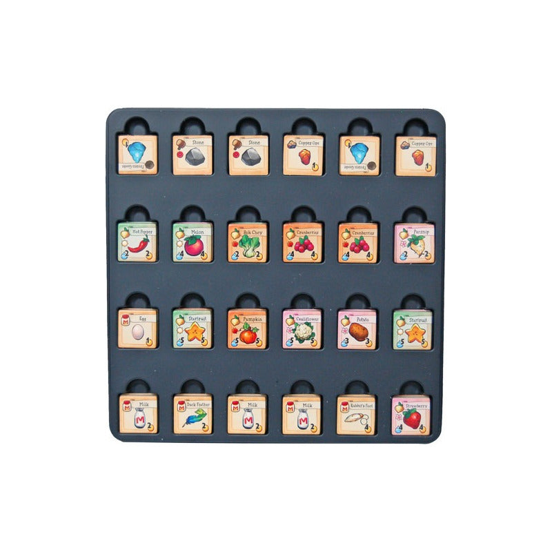 Has heredado la antigua granja de tu abuelo en Stardew Valley. Armado con herramientas usadas y algunas monedas, ¡te dispones a comenzar una nueva vida! Stardew Valley: The Board Game es una experiencia cooperativa para 1-4 jugadores. Trabajen juntos para cumplir los objetivos de su abuelo y restaurar el alguna vez vibrante Centro Comunitario. Si lo logras, el valle florecerá. Pero si fracasas, la Corporación Joja intervendrá y la magia se desvanecerá. . . Contenido: 1 tablero 1 libro de reglas 4 peones de jugador 1 peón de cónyuge 3 dados stardew 3 dados de animales 1 ficha de jugador inicial Tapetes para 4 jugadores 19 tarjetas de herramientas iniciales 21 fichas de oro 10 fichas de calor 31 cartas de pueblo 84 cartas de temporada 12 cartas de nivel de mina 40 tarjetas de mapa 8 tarjetas de gol 9 fichas de construcción 8 fichas de animales 26 tarjetas de paquete 64 cartas de mejora de profesión 49 tarjetas de artículos 17 cartas de objetos épicos 16 cartas de evento de mina 14 azulejos de joja 48 mosaicos de cultivos 24 fichas de recursos animales 16 fichas de mineral/geoda 4 baldosas de piedra 4 fichas de carne de insecto 60 fichas de árboles y forrajeros 40 mosaicos de artefactos y minerales 1 artefacto/bolsa de minerales 60 fichas de peces, basura y tesoros 1 bolsa de pesca 1 bandeja de plástico para azulejos. 1 organizador de plástico. Edades: 14+ Jugadores: 1-4 Duración del juego: 45 minutos por jugador