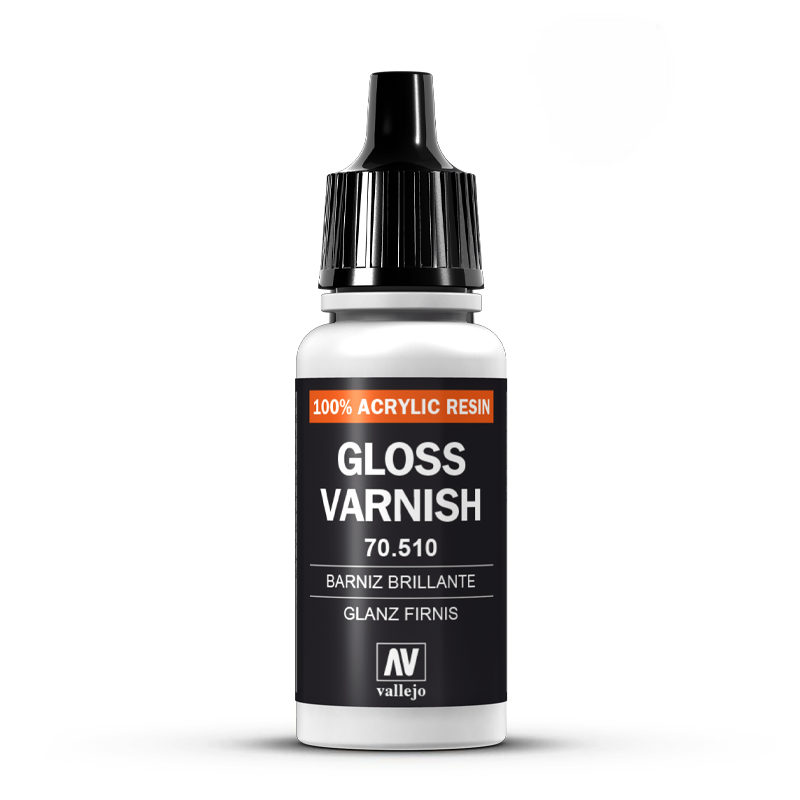 Barniz acrílico al agua con una nueva fórmula de secado rápido y resina acrílica de extraordinaria dureza y durabilidad. Protege los modelos pintados del polvo, los arañazos, la suciedad y la humedad. El barniz acrílico nunca debe aplicarse hasta que la pintura esté completamente seca (ver nota), y se recomienda esperar al menos 24 horas. El barniz debe aplicarse en capas finas a intervalos de aproximadamente 5 a 10 minutos.