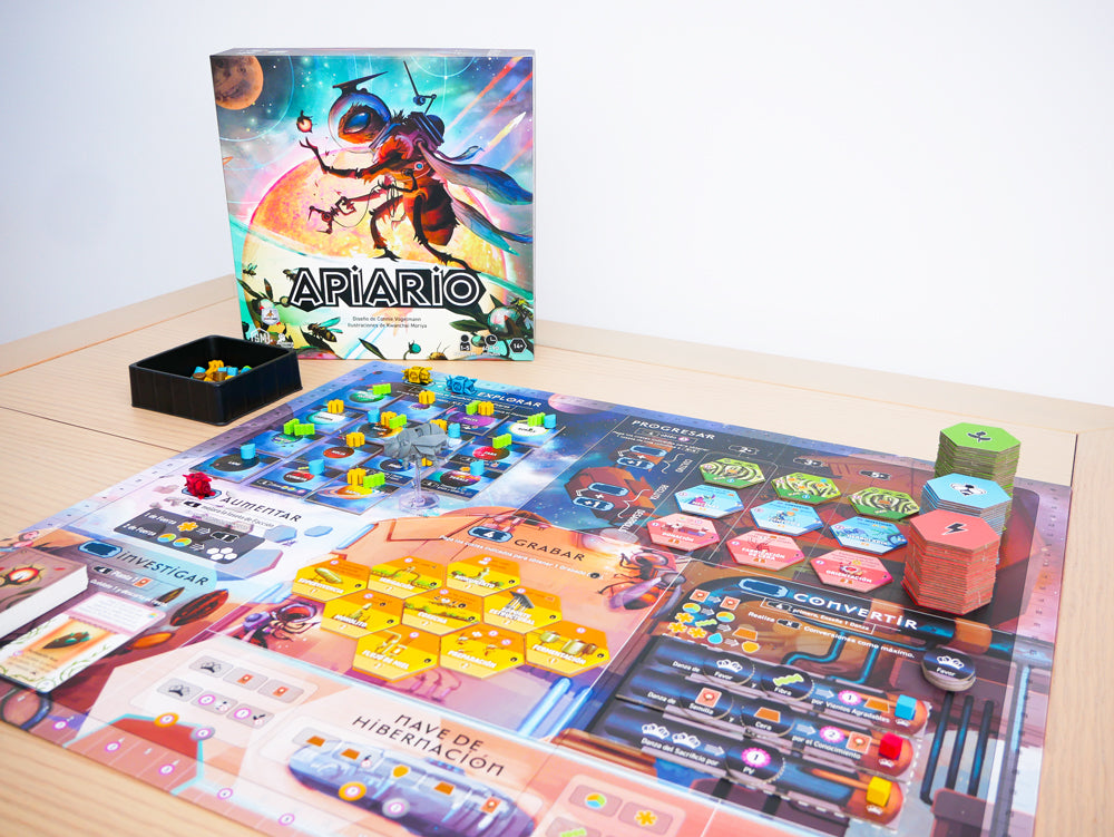 En Apiario, cada jugador controla 1 de las 20 Facciones disponibles. Tu Facción empezará la partida con escasos suministros: 1 Colmena, unos cuantos recursos y algunas abejas Obreras. Te aguarda un desafío de colocación de Obreras y la construcción de tu Colmena: Explora Planetas, reúne recursos, desarrolla tecnología y crea Grabados para mostrar la fortaleza de tu Facción (representada por puntos de victoria) durante la fase de Trabajo de un año. No obstante, la fase de Hibernación se acerca y tus Obreras solo podrán realizar unas pocas acciones antes de tener que Hibernar. ¿Podrás prosperar o solo sobrevivir?