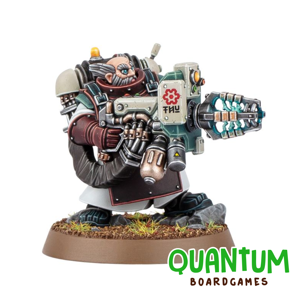 Este kit multicomponente permite montar un Arkanyst Evaluator, un especialista de apoyo para tus ejércitos de Leagues of Votann en Warhammer 40,000. El Evaluador aporta potencia de fuego experimental con armas configurables según la situación del combate. Incluye dos opciones de cabeza —con casco o sin casco— para personalizar su apariencia. 🧪
