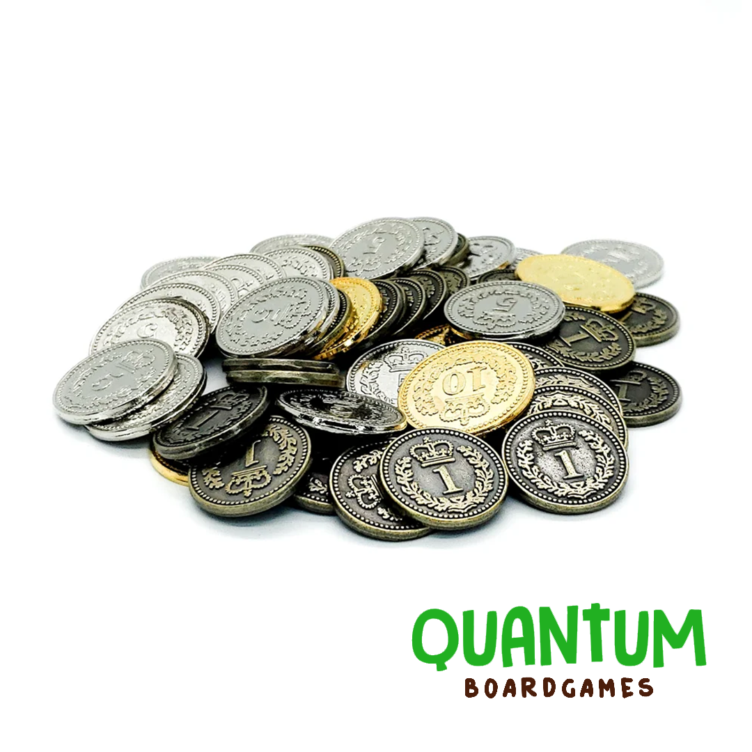 Este set de 55 monedas metálicas premium está pensado para complementar a la perfección Lisboa, reemplazando el conteo genérico por una distribución más funcional y equilibrada para el juego.