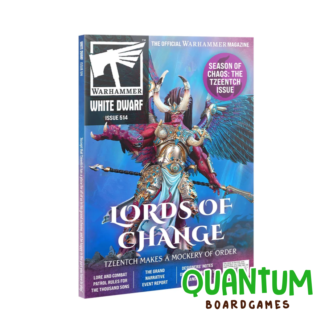 White Dwarf 514 es la revista mensual definitiva para fans de Warhammer. Repleta de trasfondo exclusivo, reglas nuevas, artículos de hobby, historias originales y contenido del estudio, esta edición profundiza en los misterios cambiantes de Tzeentch y en la guerra en constante mutación que azota los Reinos Mortales y la galaxia del 41.º Milenio. Un número cargado de creatividad, estrategia e inspiración para tus colecciones. 🎨⚔️